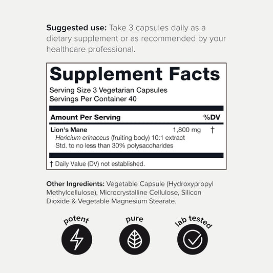 Ultra High Strength 18,000mg Lions Mane Mushroom Extract - 30% Polysaccharides - 10x Concentrated - 120 Veggie Capsules - Highly Bioavailable