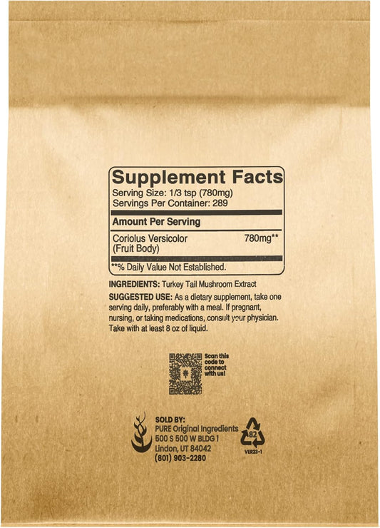Organic Turkey Tail Mushroom Powder - 8oz, Pure Trametes Versicolor, Coriolus Versicolor, Non-GMO, Original Ingredients