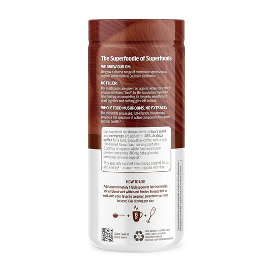 Organic Mushroom Superfood Coffee Blend Powder - 6.24 oz Canister (30 Servings) with Lion's Mane, Cordyceps, Turkey Tail, and Ginkgo Biloba for Energy and Focus