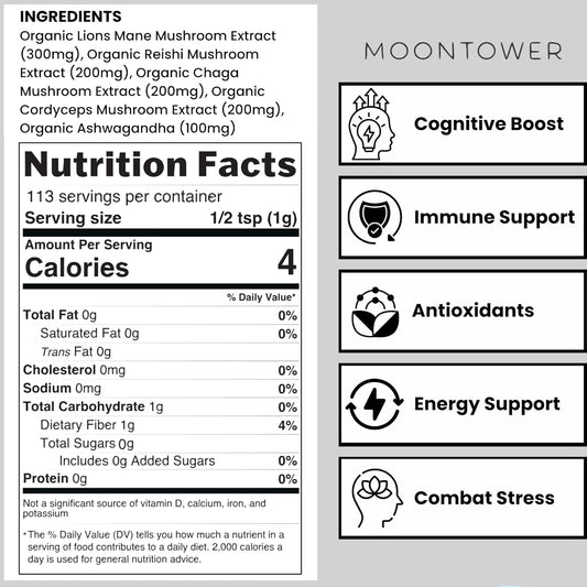Organic Mushroom Blend Powder with Lion's Mane, Reishi, Chaga, Cordyceps & Ashwagandha - Immune Support Supplement, Sugar-Free - 113 Servings