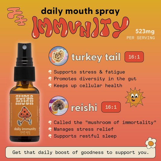 Organic SuperMush Daily Immunity Mouth Spray with Turkey Tail & Reishi - Immune & Digestive Support - 30ml Pure Extract