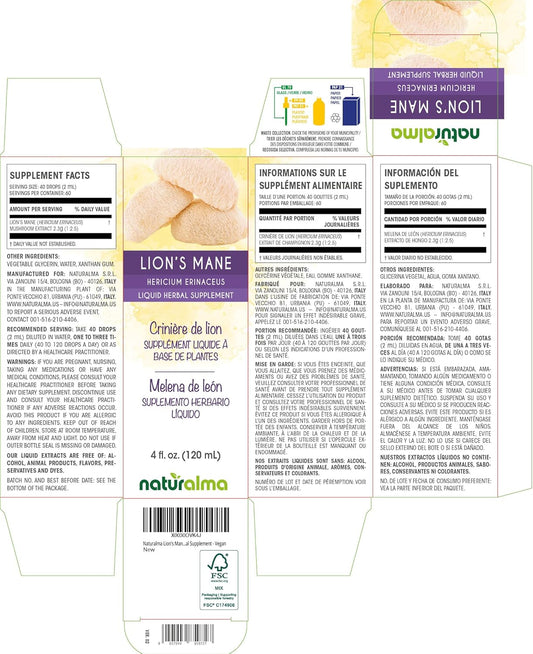 Lion's Mane Mushroom Alcohol-Free Tincture - 4 fl oz Liquid Extract Drops - Herbal Supplement Vegan Friendly
