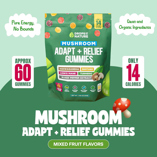 Mixed Fruits Ashwagandha & Turmeric Mushroom Gummies - Immunity & Digestion Support Vegan Supplements with Shiitake Mushroom, Turmeric Curcumin, Black Pepper, and Vitamin C Boost (60 Gummies)