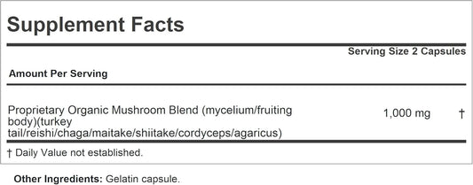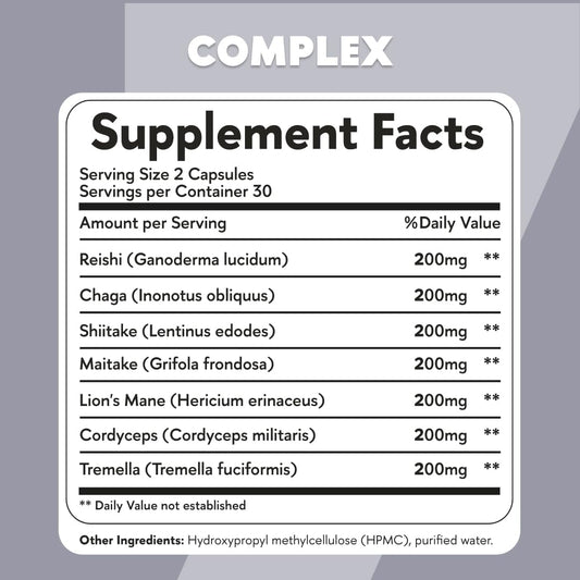 Organic Mushroom Complex 7 Supplement for Immune Support, Focus & Energy - Reishi, Lions Mane, Cordyceps, Shiitake, Chaga, Maitake & Tremella | 60 Capsules