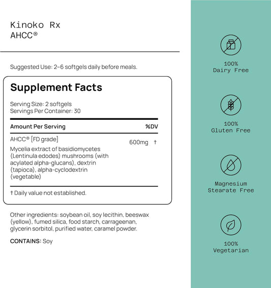 High-Quality AHCC Immune Support Supplement - Enhanced Bioavailability - Natural Mushroom Extract - Quality of Life AHCC Kinoko Rx