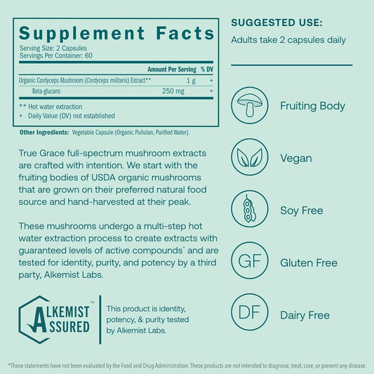 Organic Mushroom Cordyceps Capsules for Energy & Endurance - 120 Count - True Grace Formula