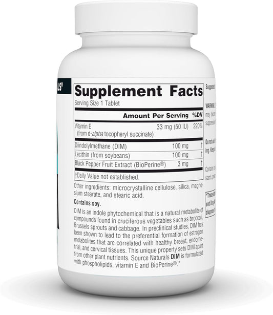 DIM 100mg Supplement with BioPerine & Vitamin E - 120 Tablets by Source Naturals