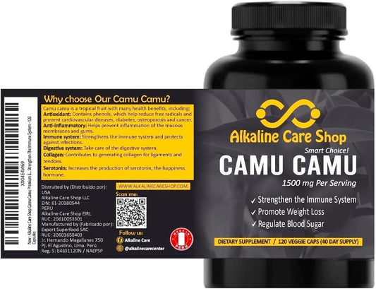 Camu Camu Capsules 1500mg - Alkaline Care Vitamin C Supplement for Immune & Anti-Aging Support
