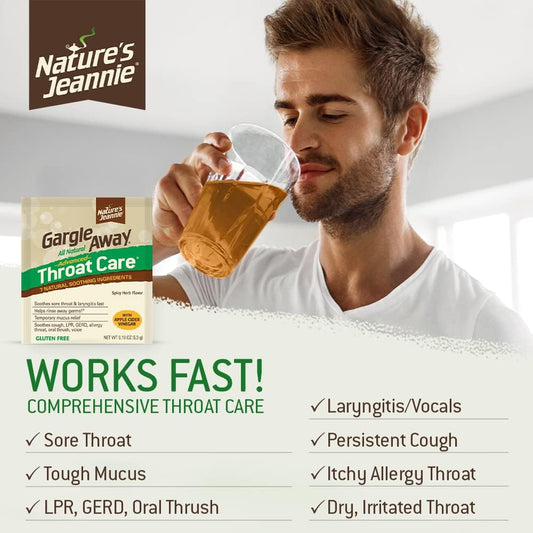 All-Natural Throat Care Packets for Adults - Soothe Sore Throat, Mucus, Cough, Oral Thrush - Spicy Herb Flavor - 20 Pack