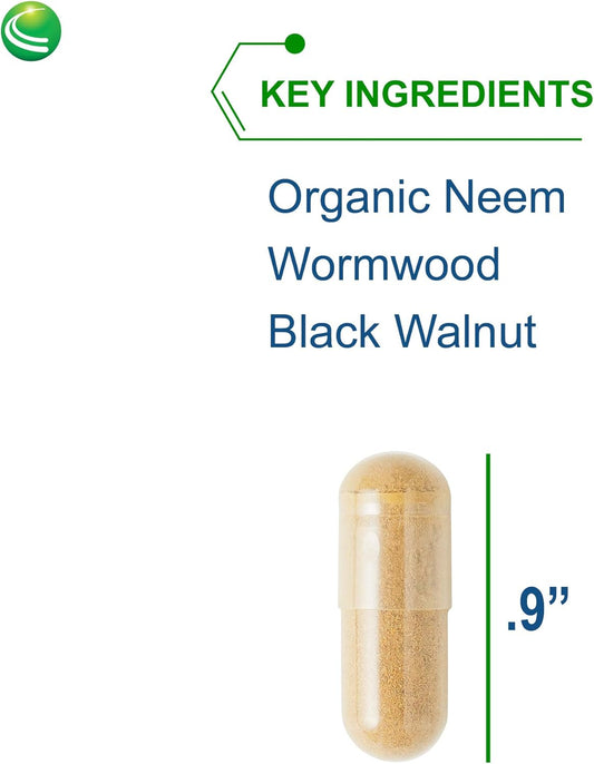 Organic Neem, Wormwood, and Black Walnut Capsules for Gut Health - Supports Intestinal Microbiome and Immune System - Gluten Free, Vegan, Non-GMO - 90 Count