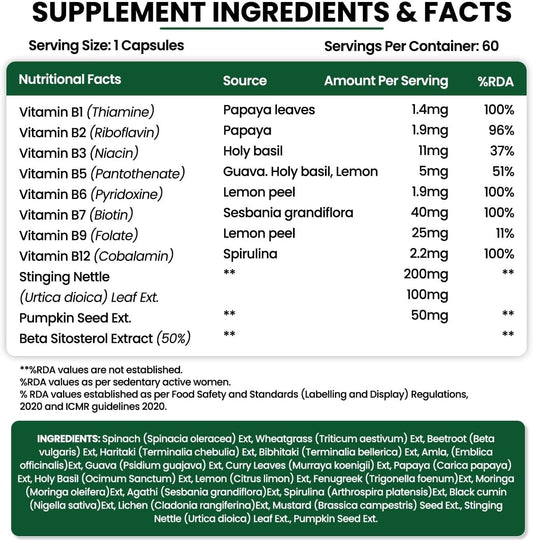 Natural Plant-Based DHT Blocker Supplement with Nettle Leaves - 60 Vegan Capsules for Men and Women