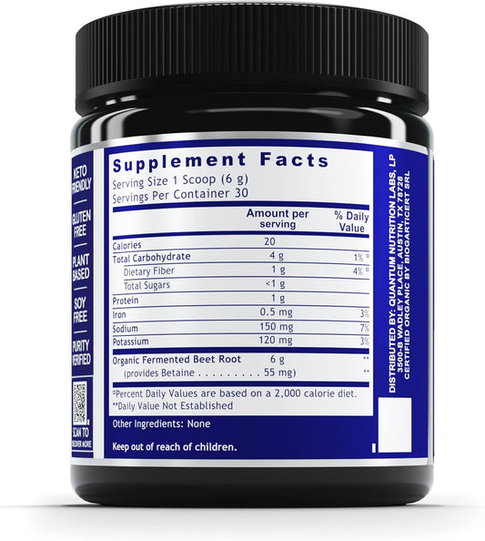 Organic QNL Qultured Fermented Beet Root Powder for Heart Health and Immune Support - Vegan Nitrate-Rich Supplement - 6.3 oz