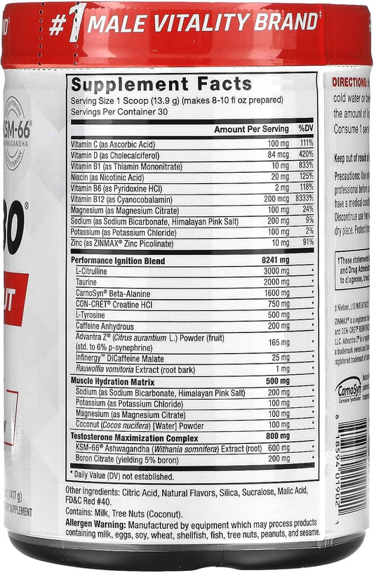 Test X180 Pre-Workout Powder: Boost Focus, Endurance, Muscle & Strength - Nitric Oxide Supplement with Ashwagandha & L-Citrulline - Fruit Punch Flavor, 30 Servings