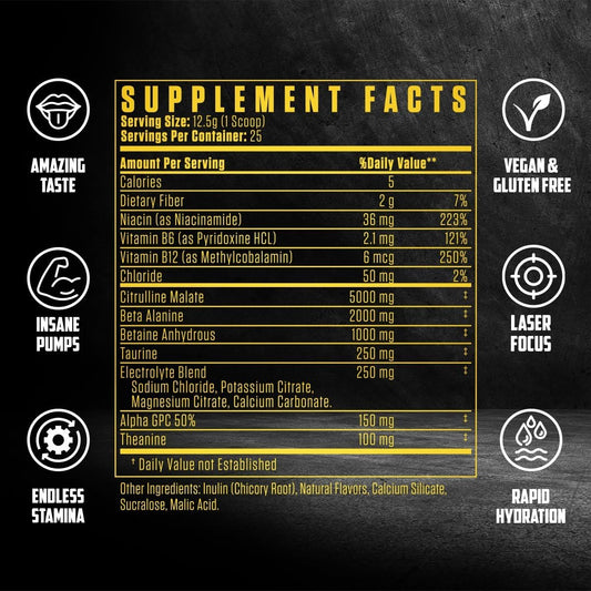 HydraPump Stimulant-Free Pre Workout Powder with Nitric Oxide Booster, Electrolytes & Nootropics - Pineapple Blast Flavor - Enhances Pumps, Focus, Stamina, Muscle Growth & Hydration
