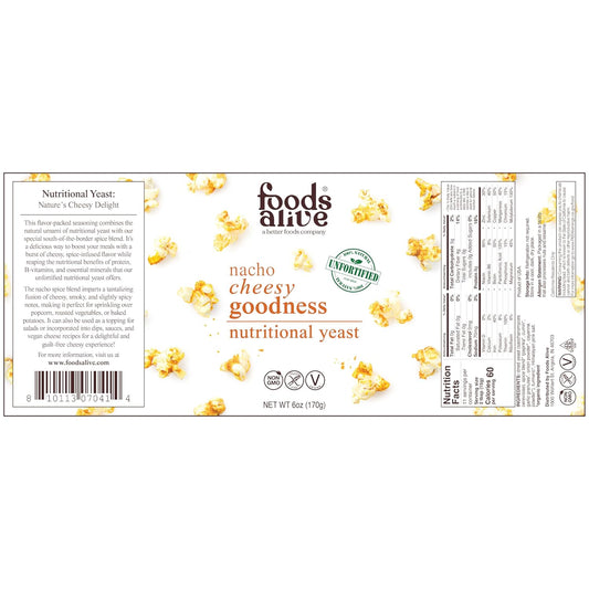 Foods Alive Nacho Cheesy Goodness Nutritional Yeast - 6oz Shaker Jar, Vegan Cheese Powder Seasoning - Non-Fortified