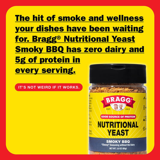 Vegan Gluten-Free Nutritional Yeast Seasoning - Smoky BBQ Flavor - Protein & Vitamin-Rich Parmesan Cheese Substitute - 3.0 oz Pack