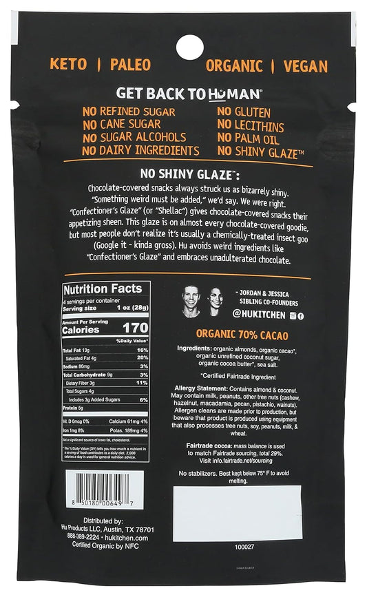 Organic Chocolate Covered Almonds by HU KITCHEN - 4 Ounces