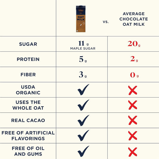 Organic Chocolate Oat Milk - Non GMO Shelf Stable Dairy-Free Milk, Unsweetened Low Sugar Oatmilk from Whole Grain Oats - 32 Oz