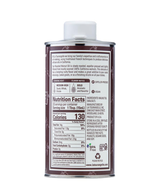 La Tourangelle Roasted Walnut Oil - 16.9 Fl Oz - Plant-Based Omega-3 Fatty Acid for Cooking, Baking, and Beauty