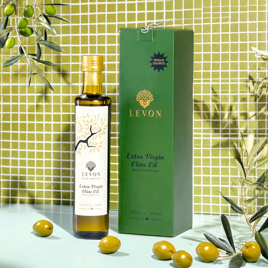 Levon Gold Harvest Mediterranean Extra Virgin Olive Oil - Premium Early Harvest Cold Pressed Monovarietal EVOO - Polyphenol Rich - 16.9 fl oz Glass Bottle in Elegant Gift Box