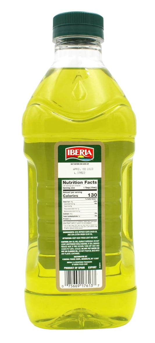 Iberia Blend of Extra Virgin Olive Oil and Sunflower Oil, 51 Fl Oz - High-Quality Cooking Oil Blend for Healthy Recipes