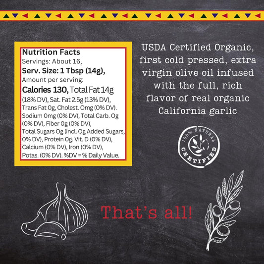 USDA Organic Garlic Gold Extra Virgin Olive Oil Infused with Garlic - Low FODMAP, Cold Pressed - 3 Pack of 250 mL Bottles