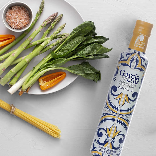 Organic Extra Virgin Olive Oil from Spain, Master Miller Premium Blend with Almond and Tomato Notes - 250 ml Glass Bottle