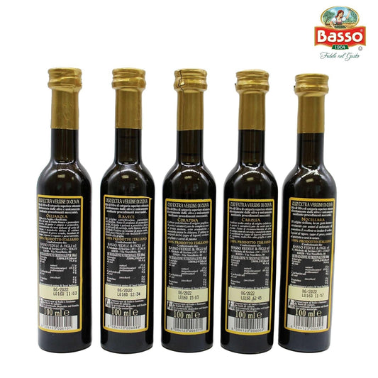 Premium BASSO 1904 Extra Virgin Olive Oil Gift Set - 5 Varieties, First Cold Pressed, Tasting and Dipping Olive Oil - 5x100ml Pack - Ideal Gift Box for Foodies