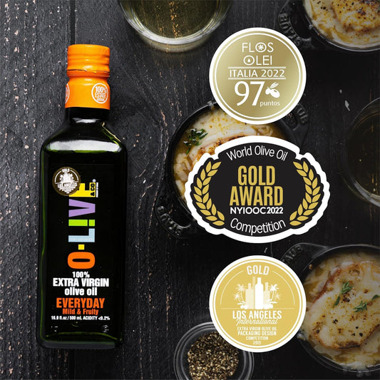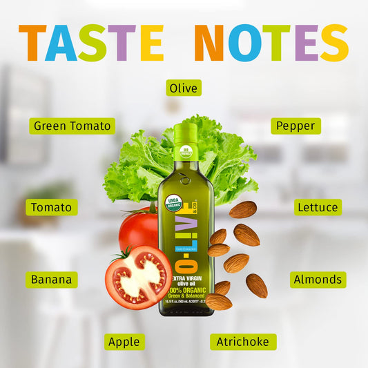 Organic Extra Virgin Olive Oil - 16.9 fl oz (500ml) - Cold-Pressed, High in Antioxidants, Non-GMO - O-Live & Co.