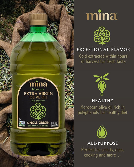 Bundle: Mina Extra Virgin Olive Oil 68 Fl Oz & Sardines in Olive Oil 4.4 Oz (Pack of 12) - Premium Cooking Oil & Protein-Packed Sardines for Healthy Meals