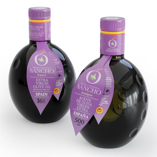 Sancho Spanish Extra Virgin Olive Oil | Organic Variety Cold Extracted | 16 fl oz Glass Bottle | Aroma & Tradition