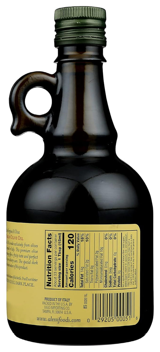 Premium Alessi Extra Virgin Olive Oil - 17 oz Bottle - 100% Pure Cold Pressed Olive Oil for Cooking and Dressing