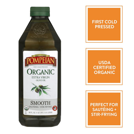 Organic Pompeian Smooth Extra Virgin Olive Oil - First Cold Pressed, Delicate Flavor for Sautéing & Stir-Frying - 32 FL. OZ.