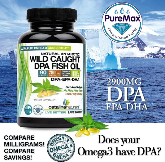 High-Potency Omega-3 DPA Fish Oil Softgels - 2900mg Triple Strength EPA & DHA - Non-GMO - 90 Count - Burp-Free Omega-3 Supplement