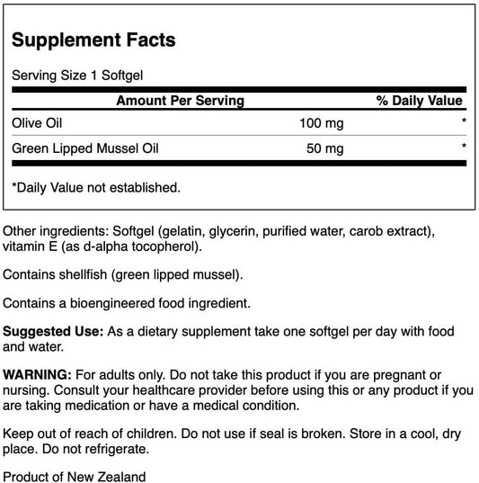 Premium Swanson New Zealand Green Lipped Mussel Oil Softgels - Rich in Omega-3 Fatty Acids for Joint Health Support - 30 Count