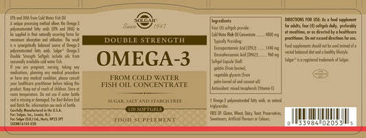 Solgar Double Strength Omega-3 Fish Oil Supplement - 120 Softgels, 700mg - Cardiovascular, Joint, & Cellular Health Support - EPA & DHA Omega 3 Fatty Acids - Gluten Free - 120 Servings