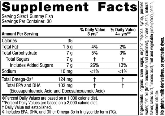 Nordic Naturals Omega-3 Gummy Fish, Tangerine Flavor - 30 Gummy Fish - 124mg Total Omega-3s - Non-GMO - 30 Servings
