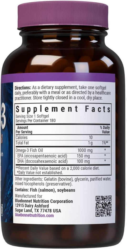 BlueBonnet Omega-3 Salmon Oil Softgels - 180 Count - Natural Source of Omega-3 Fatty Acids - White Capsules