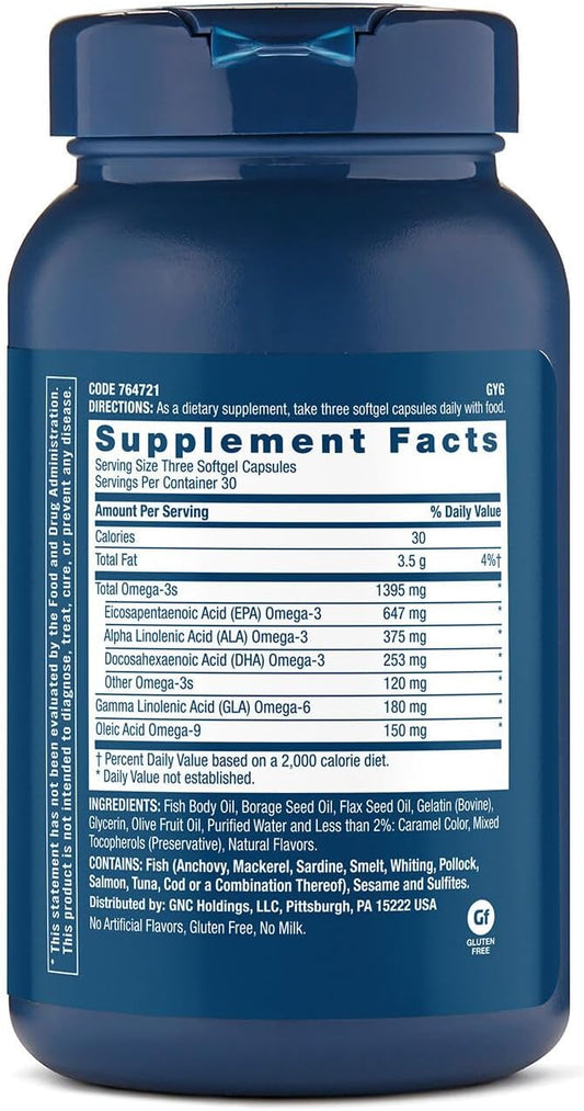 High-Potency GNC Omega 3-6-9 Complex with 1725mg per Serving from Fish and Plant Sources