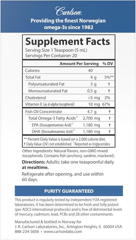 Sustainably Sourced Norwegian Fish Oil Supplement with 2,700mg Omega-3s - Heart, Brain & Vision Support - Lemon-Lime Flavor - 100mL