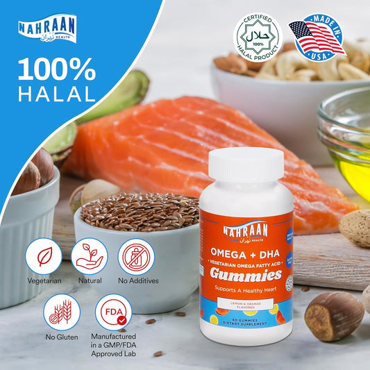 Halal Omega 3 Gummies with Lemon & Orange Flavor - Vegetarian Omega 3 Gummies for Adults & Kids - 60 Count