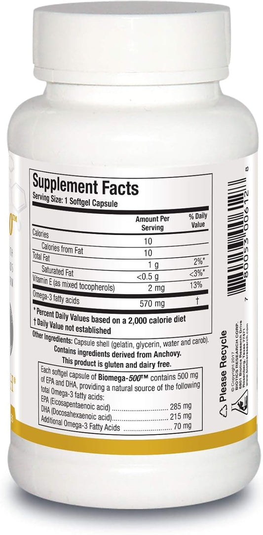 Highly Concentrated Omega 3 Fish Oil Supplement for Immune & Cardiovascular Support - Biotics Research Biomega 500, 90 Softgels