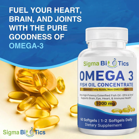 High EPA & DHA Concentration Omega 3 Fish Oil Supplements for Heart, Brain & Joint Health - Non-GMO, Purity-Tested - 60 Softgels