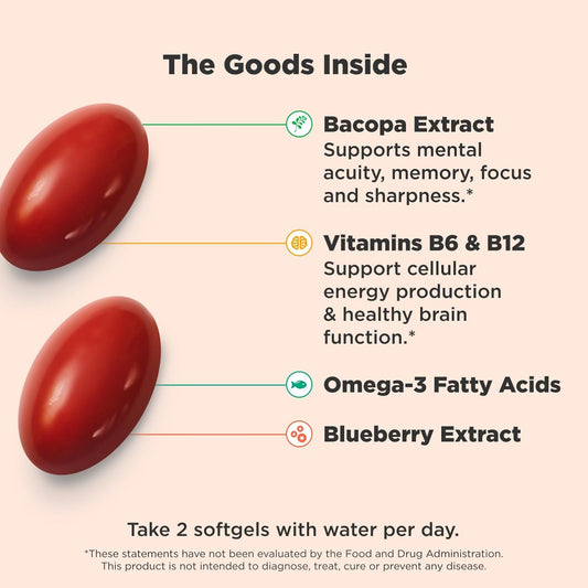 Ultra Strength Brain Support Softgels with Omega-3s, Vitamins B6 & B12 - 30 Day Supply (60 Count) - Nootropic for Healthy Brain Function, Memory, Focus & Concentration
