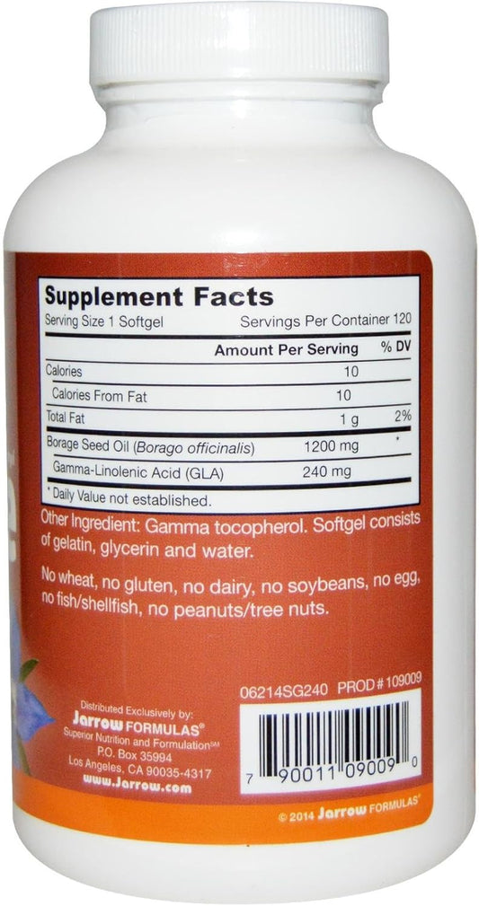 Jarrow Formulas Borage Softgels - 1200mg High Potency GLA Source - Skin & Immune Support - PMS Relief - 120 Servings