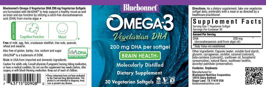 BlueBonnet Omega-3 Vegetarian DHA Softgels - 200mg, 30 Count - Natural Plant-Based Supplement