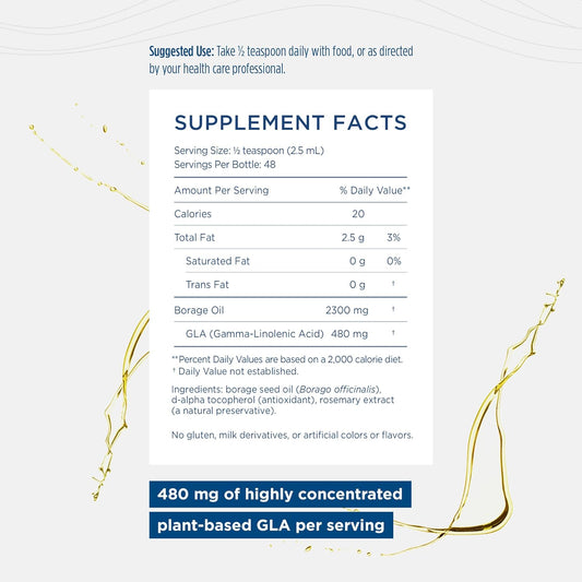 Nordic Naturals Borage Seed Oil for Healthy Skin - 4 oz, 480mg GLA, Unflavored Vegan Oil Supplement, Non-GMO Omega-6 Beauty Oil