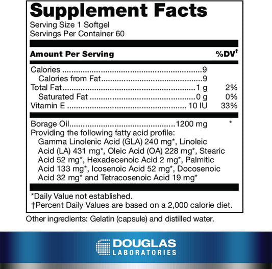 High Potency Borage Oil Softgels with 240mg Gamma Linolenic Acid | 60 Count by Douglas Laboratories