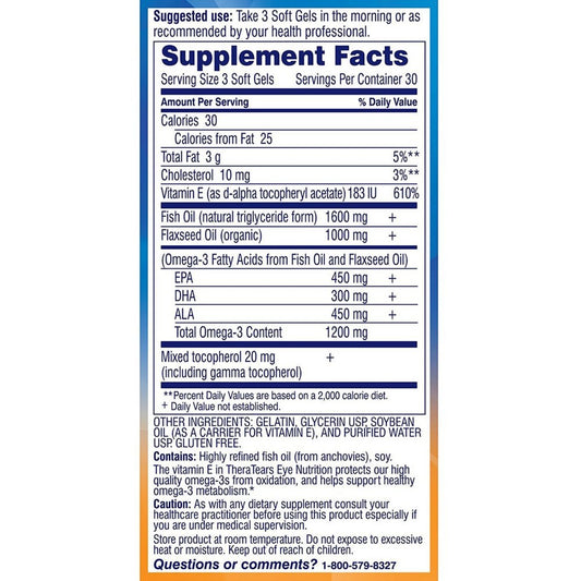 Theratears Nutrition Omega-3 Supplement - 90 Capsules for Eye Health and Dry Eye Relief
