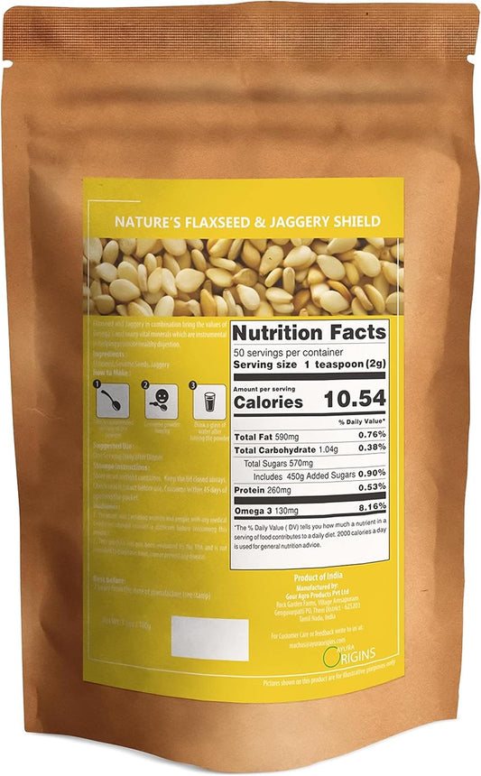 AYURA ORIGINS Flaxseed & Jaggery Supplement for Gas Relief and Gut Health - 50 Servings (3.53 oz)